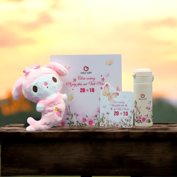 | Thông tin SP | - Set quà gồm: Túi và hộp quà thiết kế, bình giữ nhiệt, gấu bông, thiệp chúc mừng hình bướm - Kích thước: Theo yêu cầu - Màu sắc: Theo yêu cầu |