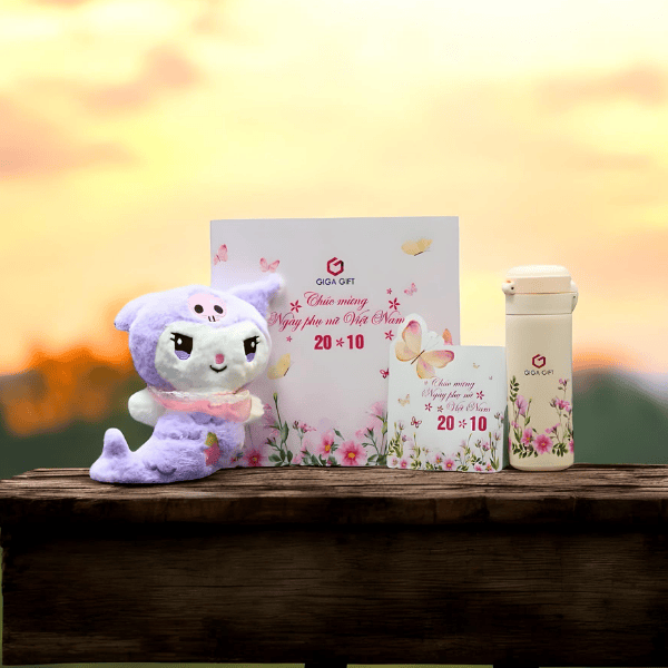 Set quà tặng GGS56 là giải pháp quà tặng được nhiều doanh nghiệp hay các tổ chức lựa chọn. Set quà gồm: Túi và hộp quà thiết kế, bình giữ nhiệt, gấu bông, thiệp chúc mừng hình bướm. Tất cả được thiết kế nữ tính, đồng bộ, có thể điều chỉnh phù hợp với phong cách của doanh nghiệp.